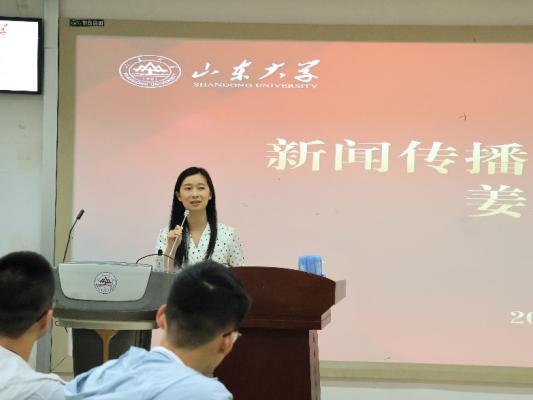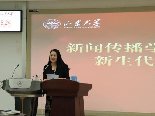 然后,新生班主任姜楠老师对新生提出了三点建议,一是敢于面对并享受困难与挑战,通过积极应对并战胜困难与挑战找准自身定位、获得成长。二是广泛交友,但是也要保持谨慎的态度。三是增强思想意识,提升思维能力。她希望新生能拥抱理想、看向生活、付诸实践,成为有底气、有担当的山大新传人。