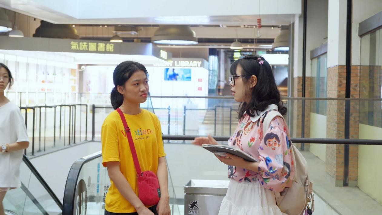 团队成员黄梓彤积极寻找并拍摄记录了澳门街边社区低碳环保理念的实践情况,并走访了澳门环境保护局在各社区分别设立的“環保加Fun站”,即“环保积分站”。这些积分站门口摆放着“智能回收机”并贴有大量的环保海报。成员在走访调研中了解了如何用塑料瓶、废纸以及玻璃瓶等生活废弃用品兑换超市现金券的流程。各社区的环保积分站会有不同的环保小游戏以及环保动画片供参观者娱乐,而大型站点则设有环保图书室供市民进行环保知识的阅读与学习,且每个工作人员都会耐心地向每位来访者讲解和科普环保小知识。通过这些积分站,社区在衣、食、住、行四个方面开展了低碳科普活动,帮助居民养成绿色低碳的生活习惯。