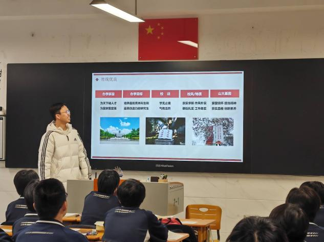 在聊城一中,刘星雨、陈振宇、杨皓开为学弟学妹分享了大学的趣味生活,将山大鲜活的一面栩栩如生地送到每个人的面前,引起同学们的向往和憧憬。