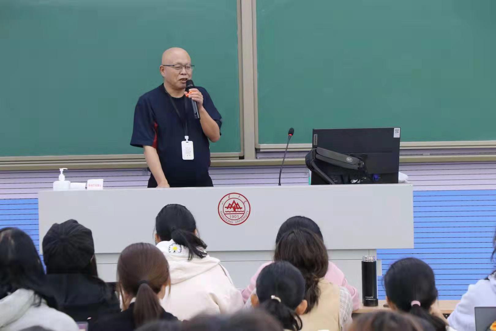 副院长刘明洋教授以“与新闻一起成长”为主题,讲述了他的新闻经历以及沉淀后的新闻感悟。本次授课分为两个部分,“新闻经历”与“新闻感悟”。首先,刘明洋教授讲述了他三个不同阶段的新闻经历——3年北大燕园记者、28年职业新闻人、8年新闻教育与研究。从一名文学爱好者到北大燕园新闻社副社长,在成为记者的路上,他采访了许多业界翘楚,从他们的身上学到了身为记者的职业担当与平等交流的态度,为以后的专业新闻经历做准备。在毕业后,刘教授从事了15年的新闻评论一线工作。他说,“这是最值得记忆的15年”,“用评论的眼光看世界,你会发现与众不同的一面”,在大众日报编辑部的15年里,他获得了独特的成就感。后来,他深入一线,关注小人物,用悲悯的眼光看世界,真正理解了新闻人的职责。在回忆这段经历的过程中,他的幸福感肉眼可见。在获得了许多新闻和记者奖项后,他开始挑战新闻研究与教育工作。从求学,到工作,再到学术,刘教授用深厚的实践经历,得出了不同视角的新闻感悟:新闻是一种力量、一种责任、一种情怀、一种能力。其中最令人印象深刻的一点是新闻人的责任,刘教授分别阐释了职业精神、奉献精神与牺牲精神,点出“新闻是一种特殊的职业体系”,为同学们的新闻观与职业观增添了信念与力量。