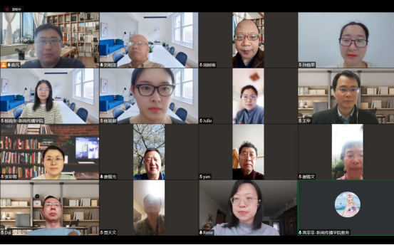 随后,各位教师结合线上授课具体情况开展交流讨论。围绕教务考评工作,殷岩反映在线上授课初期存在的视频易卡顿等问题。唐锡光表示在线上教学过程中也遇到过类似问题,并建议为各位不够熟悉线上教学的教师提供技术支持。谢锡文认为学院可以通过组建助教团队的方式为缺乏线上教学经验教师提供技术支持以保证授课质量。戴元初主张根据教师团队特点进行线上教学“适老化”改造,完善线上互动机制等。王华建议成立新闻学系教学团队,以“老带新”的方式促进教学发展,在此基础上积极与其他学校交流学习,创新线上教学形式。