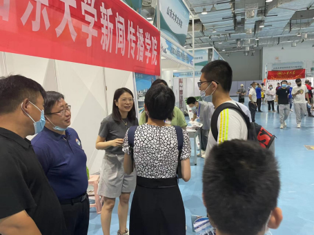 新闻传播学作为百廿山大最年轻、最有活力的学院之一,是中宣部、教育部遴选的全国首批十家“部校共建”重点建设的新闻学院,学院坚持马克思主义新闻观,全面落实立德树人根本任务,倡导文理兼修、学科交叉的融合性、开放性教学体系。展会期间接到许多家长、考生的积极问询,参会教师一一解答专业设置、就业升学、今后发展等多个问题,杨晓冬接受齐鲁晚报、大众网等媒体的采访宣传学院,并在现场派发学院宣传册。