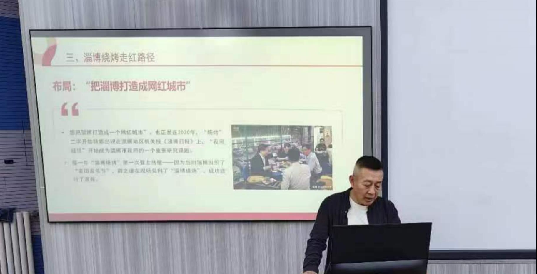 在分享的尾声,廖鲁川向同学们展示了“淄博烧烤”现象级传播带来的启示。首先,Z世代成为中坚力量,营造青年友好型环境是实现有效传播的关键。另外,在短视频时代,媒体要学会利用新的传播形式,善用社交平台,紧紧抓住流量密码,实现议题式“种草”。同时,不应忽略内容的重要性,媒体要用好故事贯穿全程,因势利导做好内容运营,主动作为,全过程引导舆论使其发挥积极作用。