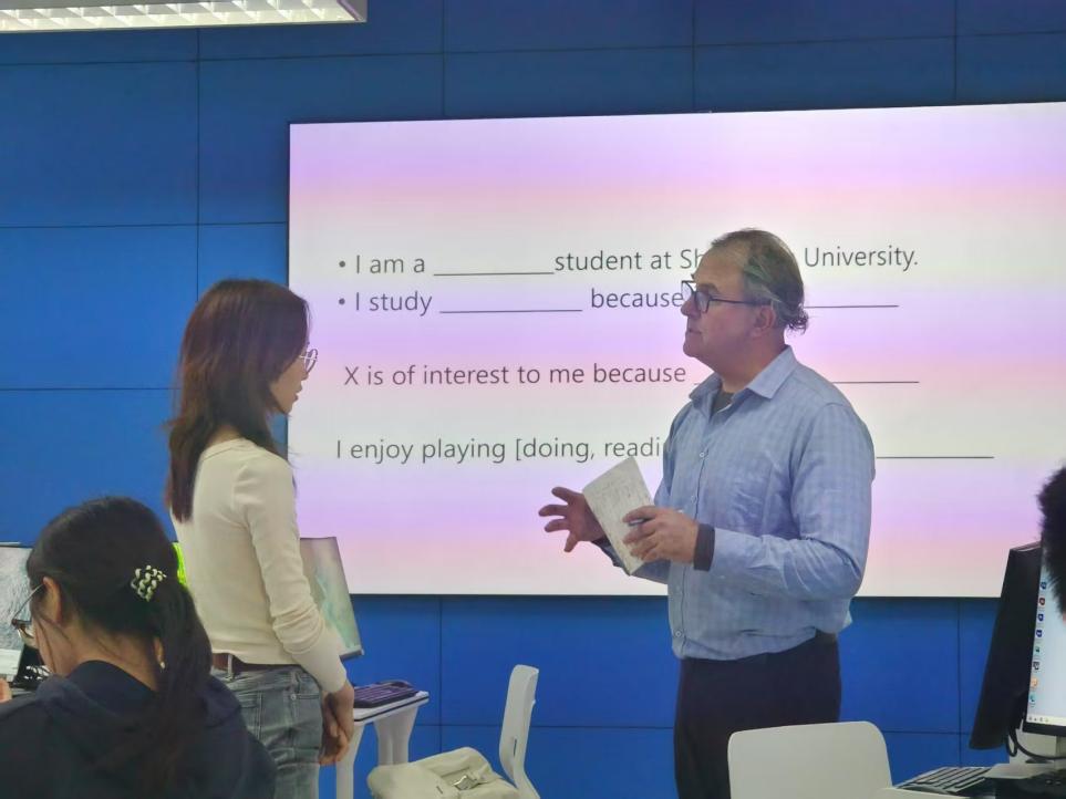 活动上,Dr Shaun以风趣幽默的方式并结合自身情况,从面试和采访经历谈到现实愿望,从商业和学术的实用性谈到竞争力的提升与机会,从《双城记》《指环王》等作品谈到文化差异与经典学习。同学们表现积极,每个人在现场除了自我介绍之外还与外教面对面进行交流,这不仅锻炼了英语口语,更激发了跨文化交流与传播的热情。