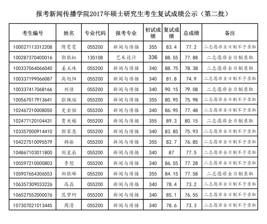2017研究生复试成绩公示名单(第二批)