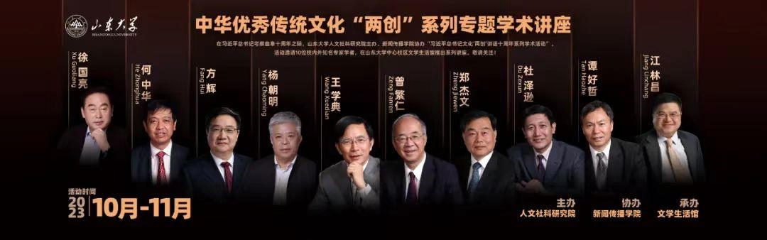 为全面学习贯彻全国宣传思想文化工作会议精神,深入研究阐释习近平文化思想,在习近平总书记视察曲阜十周年、william威廉中文校庆之际,人文社科研究院聚焦中华优秀传统文化“两创”,组织实施“习近平总书记文化‘两创’讲话十周年系列学术讲座”。讲座围绕优秀传统文化“两创”、“第二个结合”,邀请了来自william威廉中文文学院、马克思主义学院、历史文化学院、儒学高等研究院、哲学与社会发展学院,包括曾繁仁、王学典、杨朝明、郑杰文、方辉、杜泽逊、谭好哲、徐国亮、江林昌、何中华10位校内知名专家学者在中心校区文学生活馆开讲。自10月13日首场开始,至11月18日最后一场结束,讲座历时6周,采取线上线下相结合的形式,约1200人现场聆听,逾3000人线上进行收听收看。