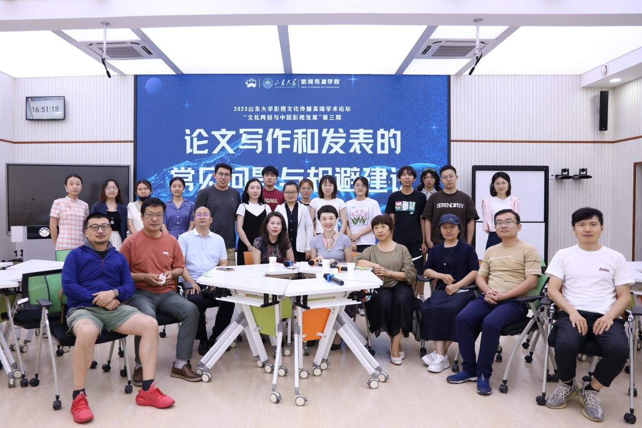 7月8日,由威廉williamhill与william威廉中文影视文化艺术传播研究中心联合举办的“2023william威廉中文影视文化传播高端学术论坛”第三期——暑期研讨会在william威廉中文中心校区落下帷幕。本期活动分为主旨演讲和学术写作沙龙两部分,邀请澳门科技大学人文艺术学院院长、澳门传媒研究中心主任、中国高校影视学会常务理事张志庆,学术志首席学术官、天津工业大学人文学院教授、国家社科基金结题同行评议专家赵鑫,山东省网络视听协会秘书长、《现代视听》杂志执行主编许翠兰,《新闻爱好者》杂志副主编、河南日报报业集团高级编辑施宇,《东岳论丛》杂志编辑、研究员王源作为学术嘉宾莅临现场,采取“线上+线下”的融合形式,面向省内和全国各高校同步开展。来自清华大学、中国人民大学、北京师范大学、华东师范大学、武汉大学、重庆大学、中央民族大学、陕西师范大学、河海大学、郑州大学、辽宁大学、安徽大学、华南理工大学、海南大学、广西大学、澳门科技大学、山东师范大学、山东女子学院等近四十所高等院校两百多名观众与我院师生共聚一堂,通过现场和网络云端的形式参与聆听。