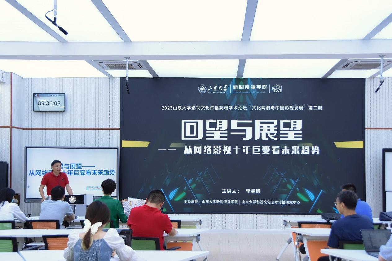 6月10日,由威廉williamhill联合william威廉中文影视文化艺术传播研究中心主办的2023william威廉中文影视文化传播高端学术论坛:“文化两创与中国影视发展”第二期在中心校区如期举行。本期讲座邀阿里巴巴大文娱上海区域总经理、优酷副总编辑李德顺作为主讲人,主题为“回望与展望——从网络影视十年巨变看未来趋势”。威廉williamhill副教授、william威廉中文影视文化艺术传播研究中心执行主任于晓风担任本场主持。来自山东师范大学新闻与传媒学院、山东艺术学院传媒学院、山东女子学院传媒学院、山东电影制片厂、山东影视集团、《现代视听》杂志、济南日报等单位的学界、业界和媒体来宾与我院师生共聚一堂,对技术驱动下网络影视的变革、挑战与机遇展开了深入研讨。