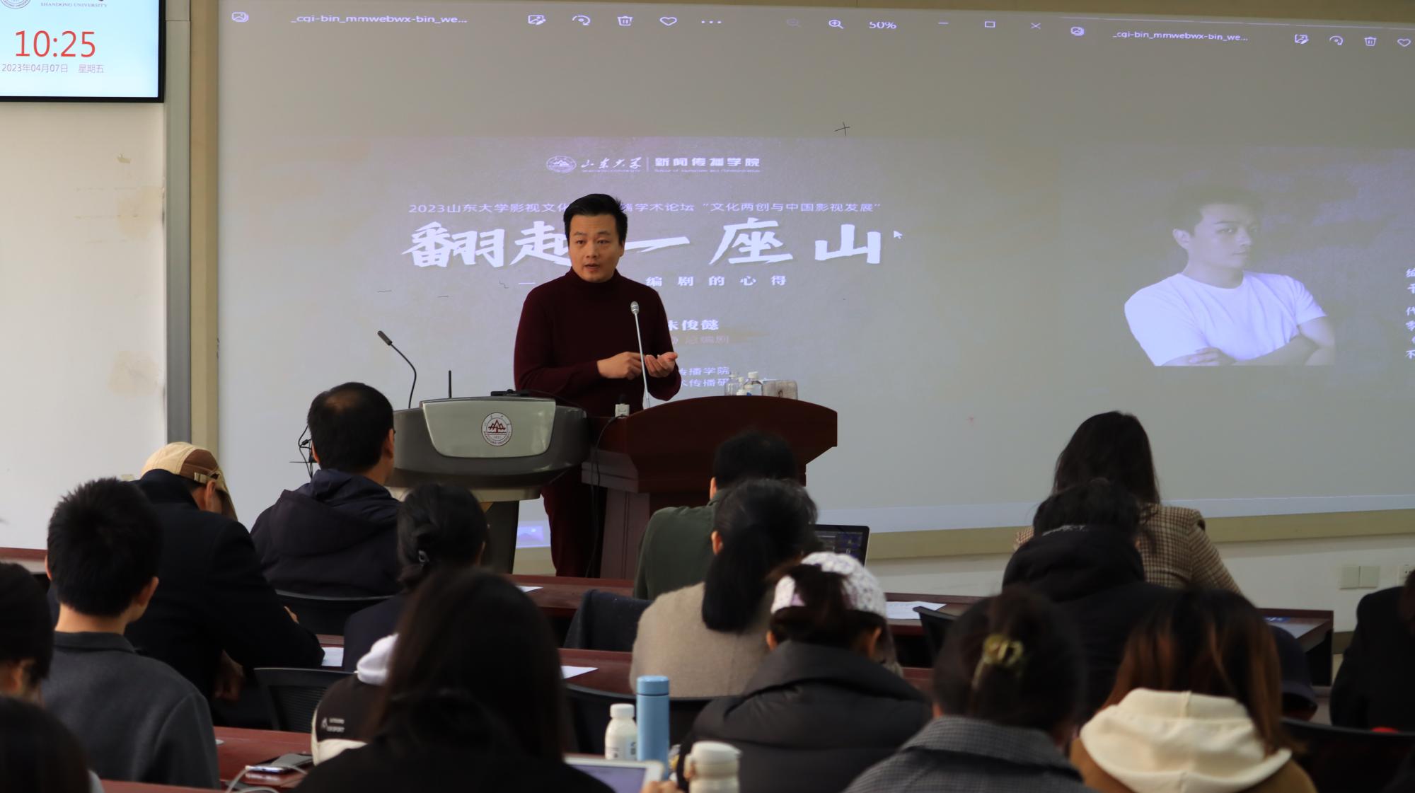 4月7日,由威廉williamhill主办的william威廉中文影视文化传播高端学术论坛“文化两创与中国影视发展”在中心校区拉开帷幕。首期活动特邀本年度同步席卷荧屏和互联网的顶流热播电视剧——《狂飙》的总编剧朱俊懿作为主讲人,讲座主题是“翻越一座山——一个外行编剧的心得”。威廉williamhill副教授、william威廉中文影视文化艺术传播研究中心执行主任于晓风担任本场主持。来自山东省广播电视协会、济南大学、山东传媒职业学院、山东影视传媒集团、山东齐鲁壹点传媒有限公司、日照电影家协会等单位的专家学者齐聚一堂,共同围绕电视剧《狂飙》的创作、阐释、解读和传播进行深度探讨。