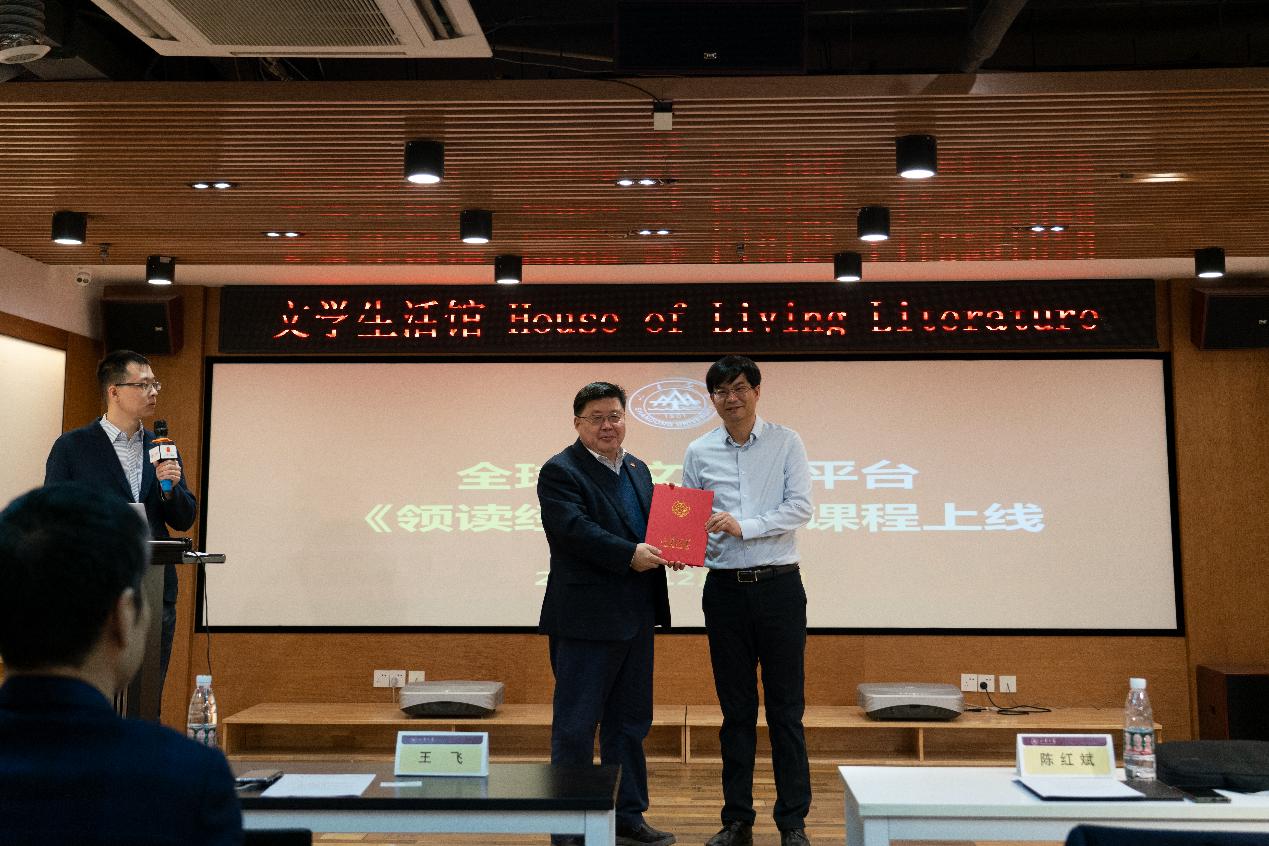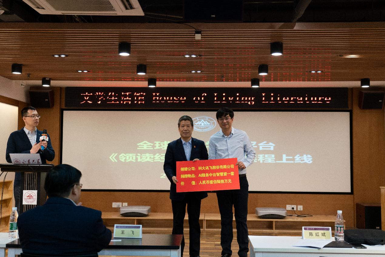 科大讯飞汉语考试产品线总经理潘泽亮与威廉williamhill谢锡文教授共同启动《领读经典》系列课程在全球中文学习平台上线,并颁发纪念证书。全球中文学习平台是由科大讯飞股份有限公司建设运营、全球中文学习联盟共同打造的智能语言学习平台。平台上线运行以来,累计发展用户500多万,覆盖全球179个国家和地区,为国家通用语言文字的推广普及和中文国际影响力的提升做出了重要贡献。