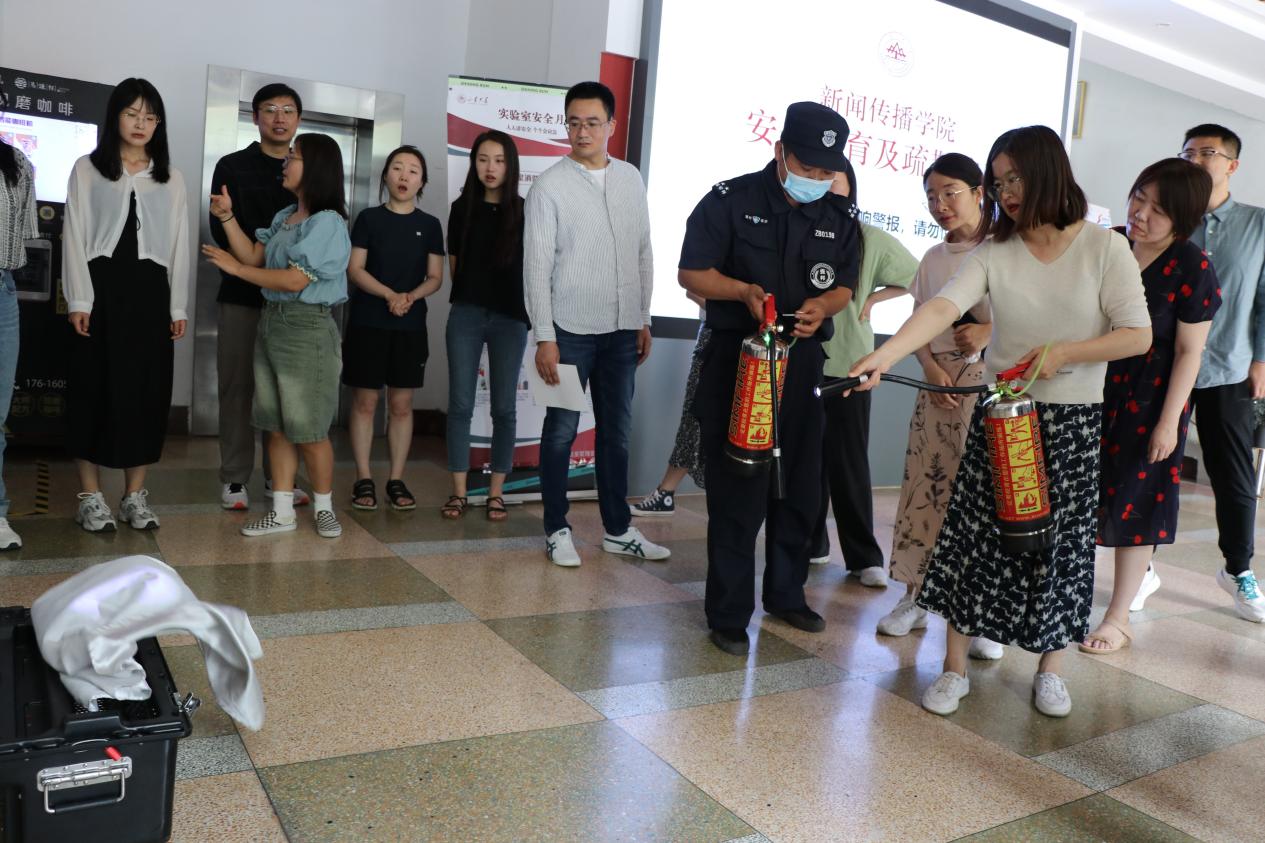 落实学校“安全生产月”工作要求,提高师生应急疏散和实验室突发事故处置能力,2023年6月16上午威廉williamhill邀请校党委保卫部面向全院师生开展安全教育疏散演习学院党委副书记王丽君、副院长倪万和实验中心主任于智源及专业教师、机关管理人员、实验室安全负责人和学生骨干等50余人参加了本次安全培训。