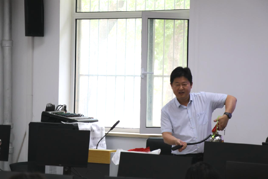 校党委保卫部副处长董太华老师担任主讲,首先播放了实验室安全事故真实案例,随后向师生讲解了做好安全工作需要落实的四个能力——敏锐查找安全隐患的能力、预防安全隐患发生的能力、处理初期火情的能力、遇险逃生自救的能力。之后董太华阐释了灭火器的区分和“五字”使用要诀“提、拔、握、压、喷”,并进行了模拟灭火器使用方法的现场演示。