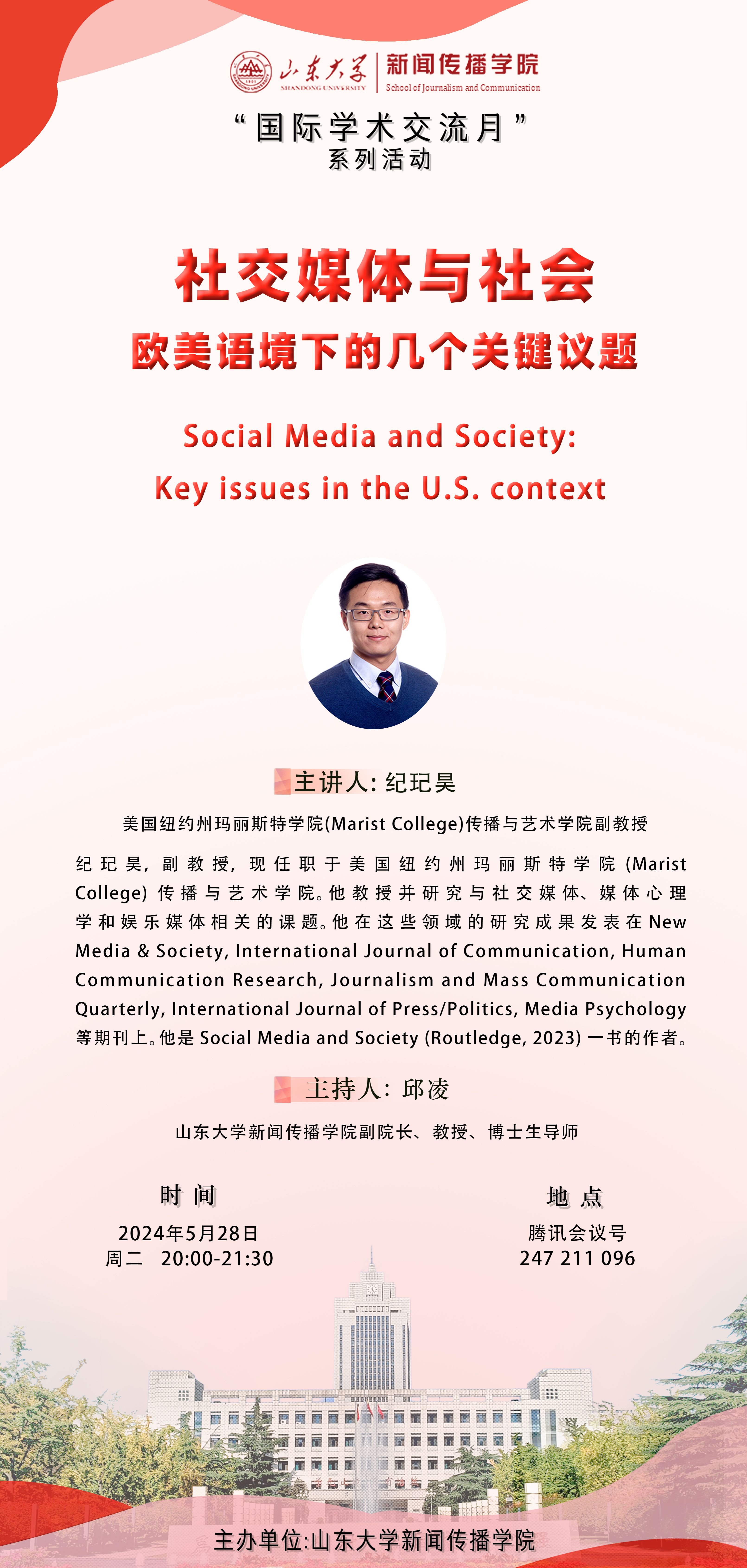 二、主讲人:纪玘昊 美国纽约州玛丽斯特学院(Marist College)传播与艺术学院