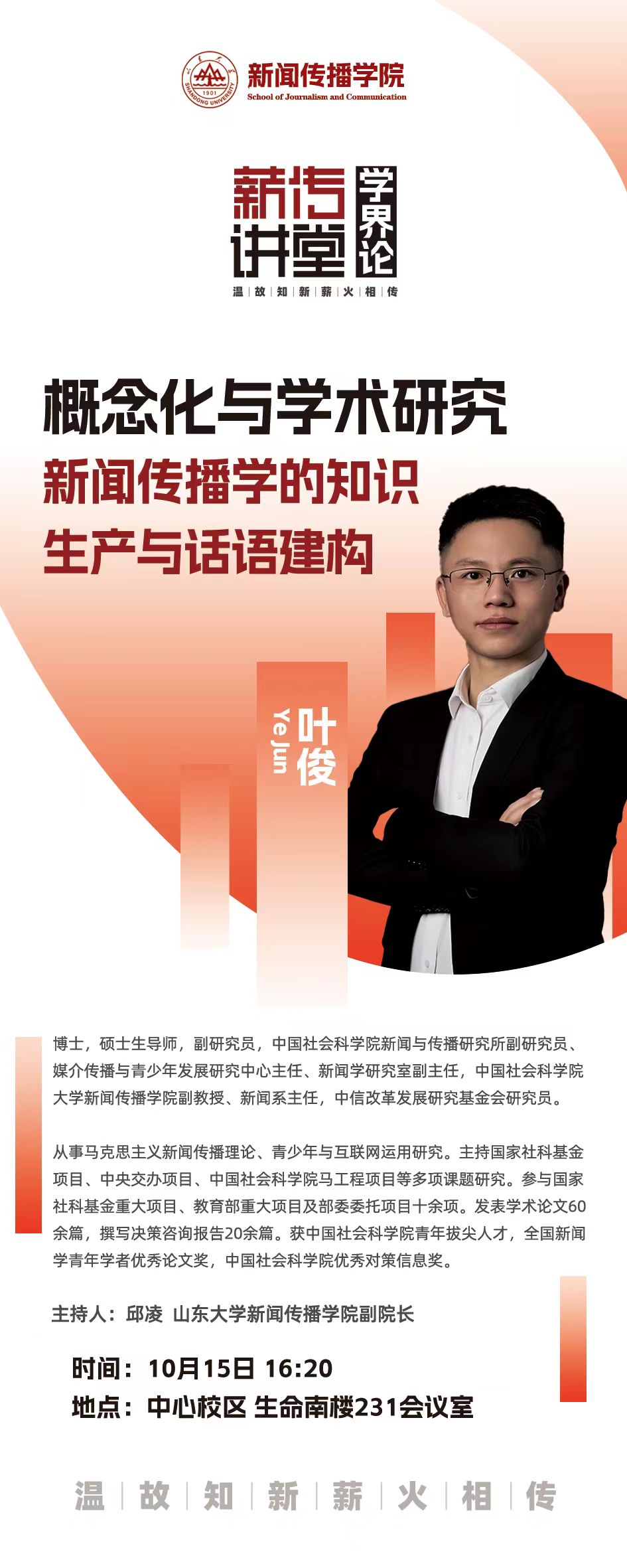 讲座题目:概念化与学术研究:新闻传播学的知识生产与话语建构