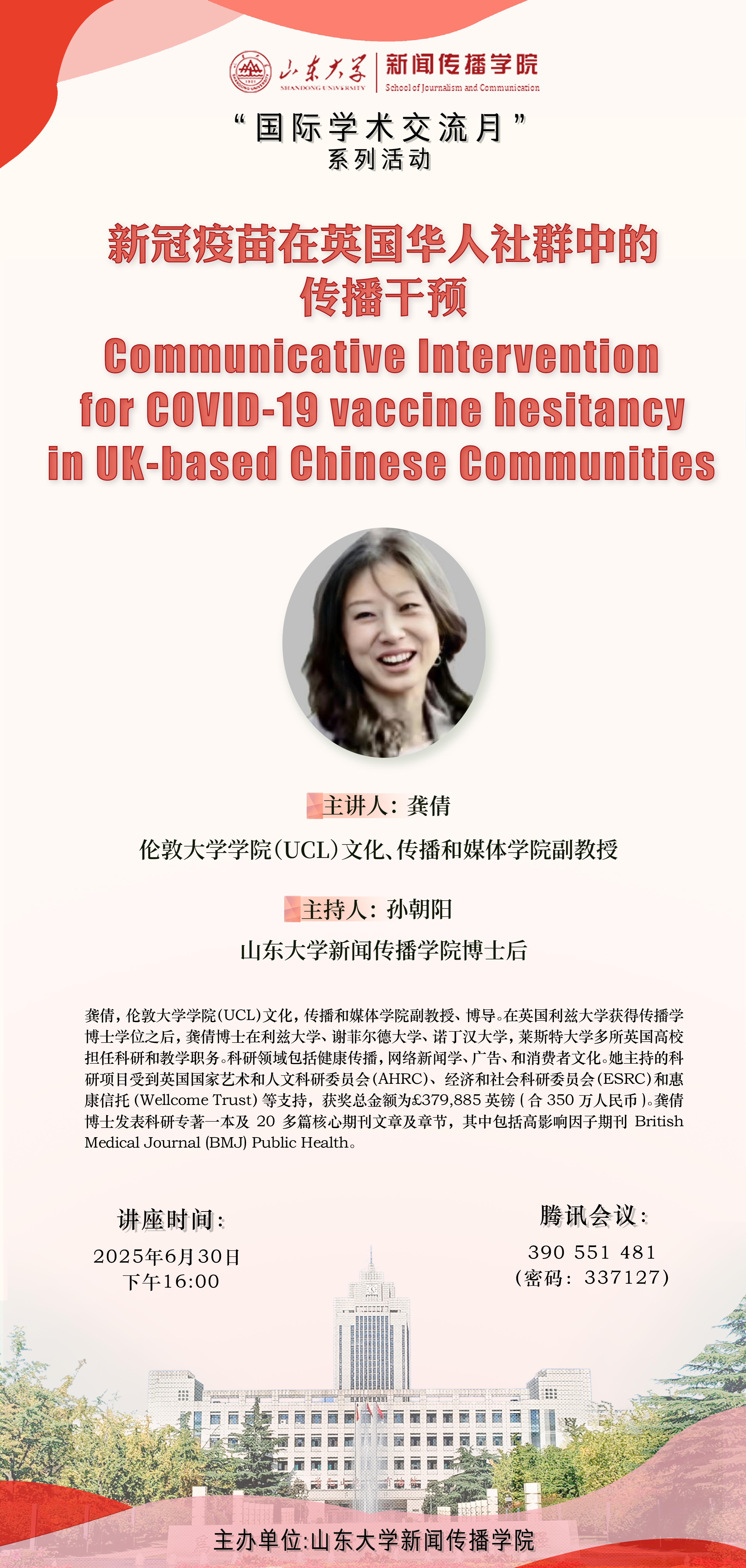 一、讲座题目:Communicative Intervention for COVID-19 vaccine hesitancy in UK-based Chinese Communities