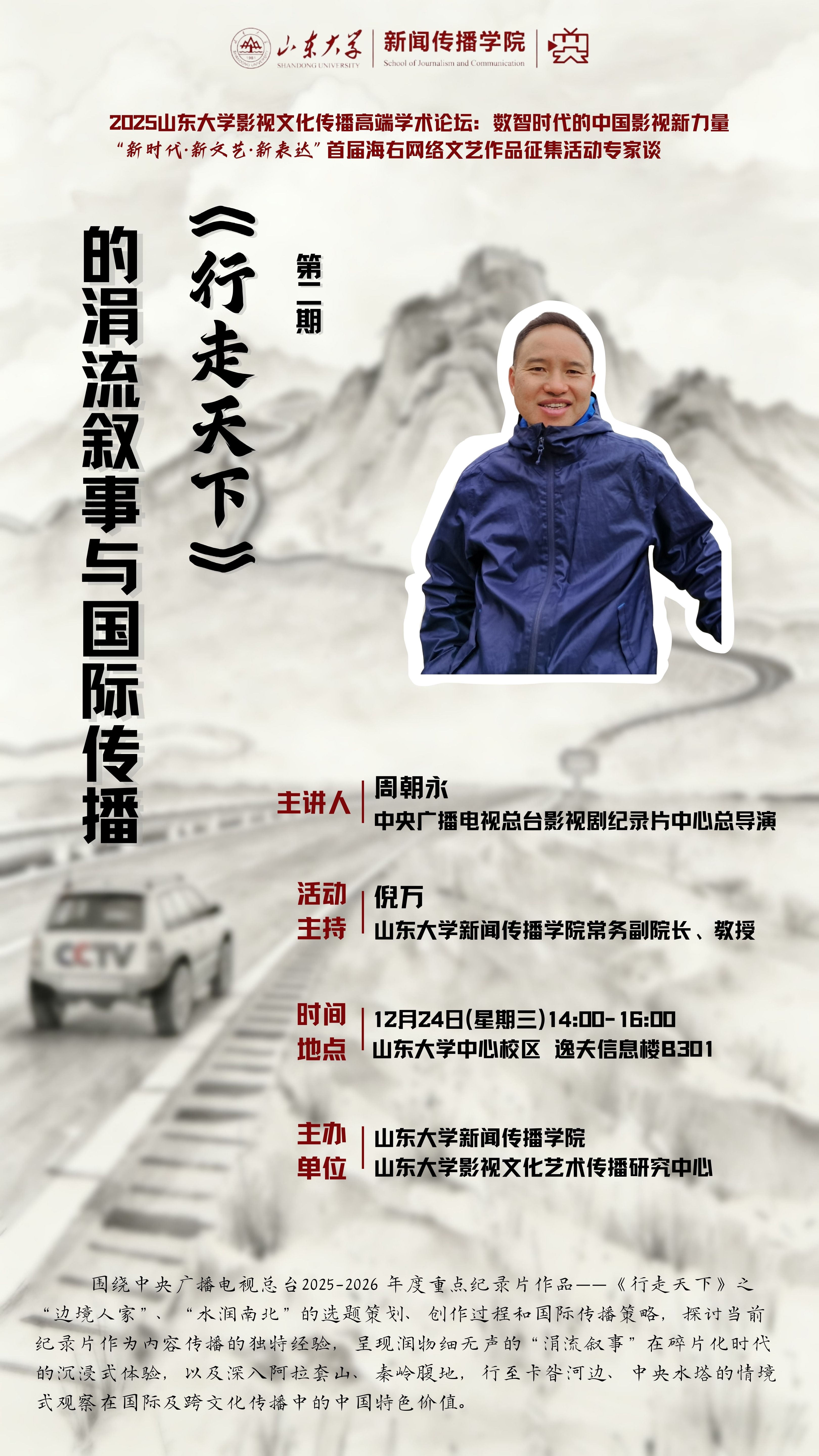 一、讲座题目:《行走天下》的涓流叙事与国际传播