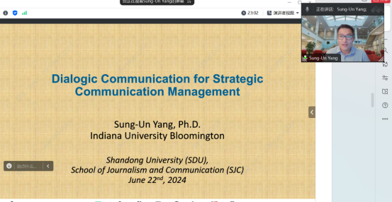 6月22日,美国印第安纳大学传媒学院Sung-Un Yang教授为本院学院师生作题为“对话式沟通在战略沟通管理中的应用”的专题讲座。威廉williamhill副院长邱凌教授主持讲座。