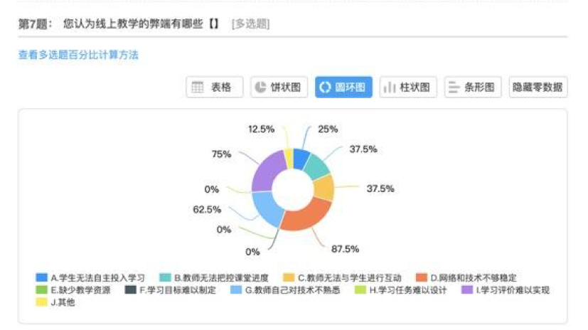 大家通过问卷表达了对网络授课这一新教学模式的看法,认为该教学模式提高了师生的技术信息素养,促进了学生的自主学习与自我管理能力,是常态教学无法开展时的一个较好的解决方案。同时老师们也开始反思网上授课存在的问题,提出该教学方式受网络技术和传输质量的限制,师生之间很难实现良好互动,这使得网络授课的课堂效果难以保证。大家普遍认为,如何发挥网络教学优势,使之成为常态教学的良好补充值得进一步讨论。
