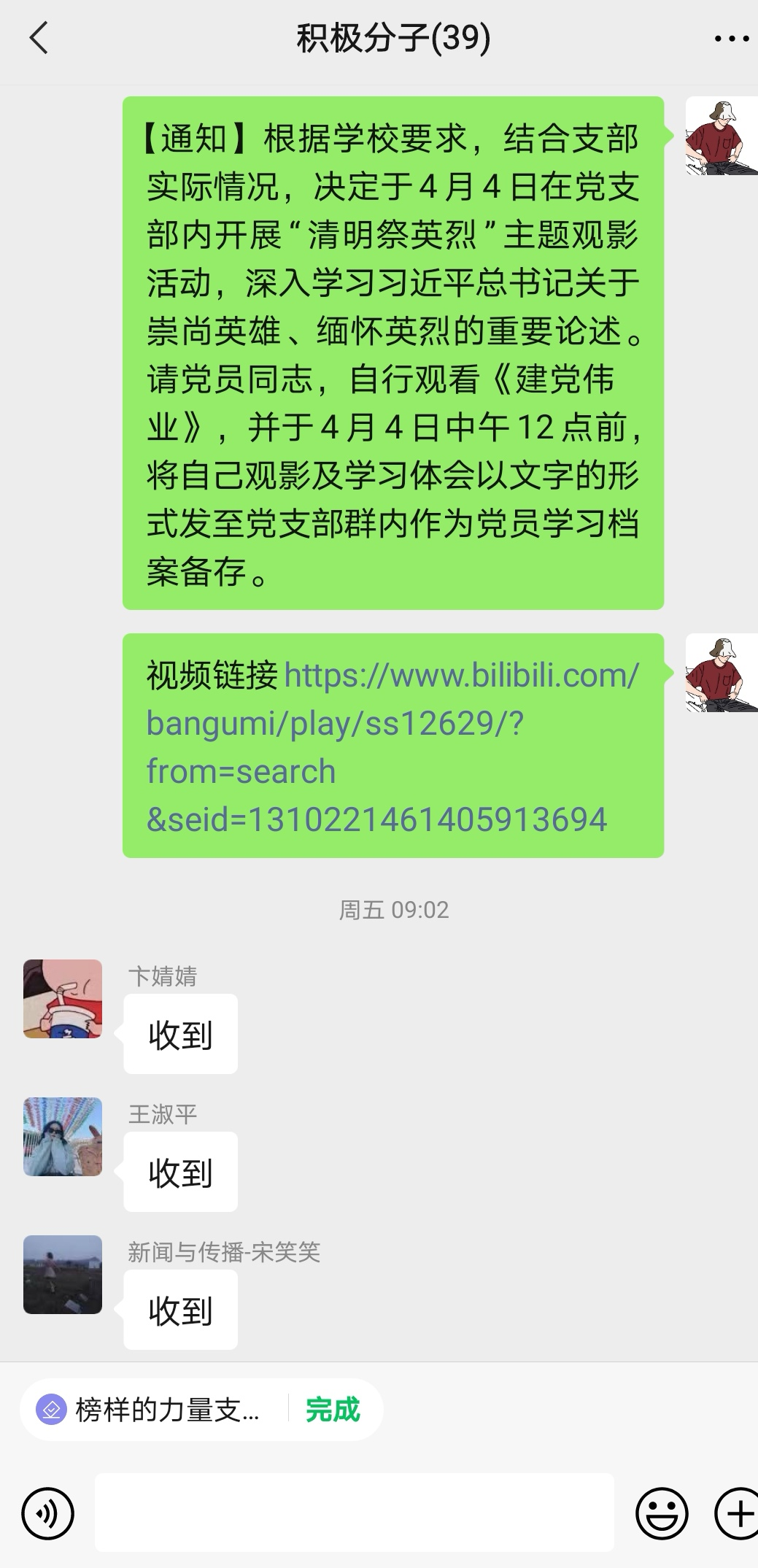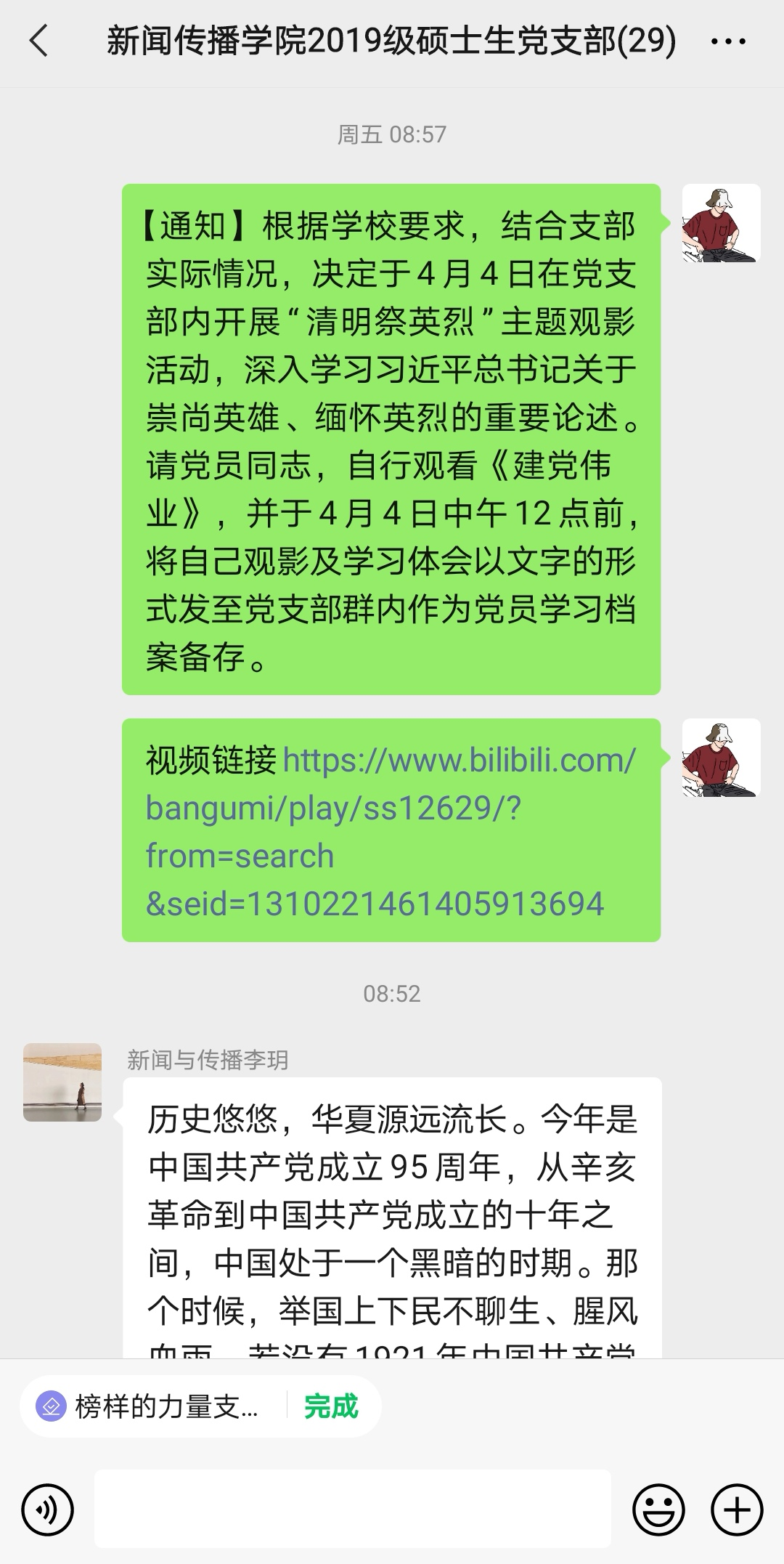 4月4日,为祭奠英烈,感悟英雄精神,威廉williamhill2019级硕士生党支联合博士党支部组织开展主题观影活动。支部全体党员、积极分子参加活动。