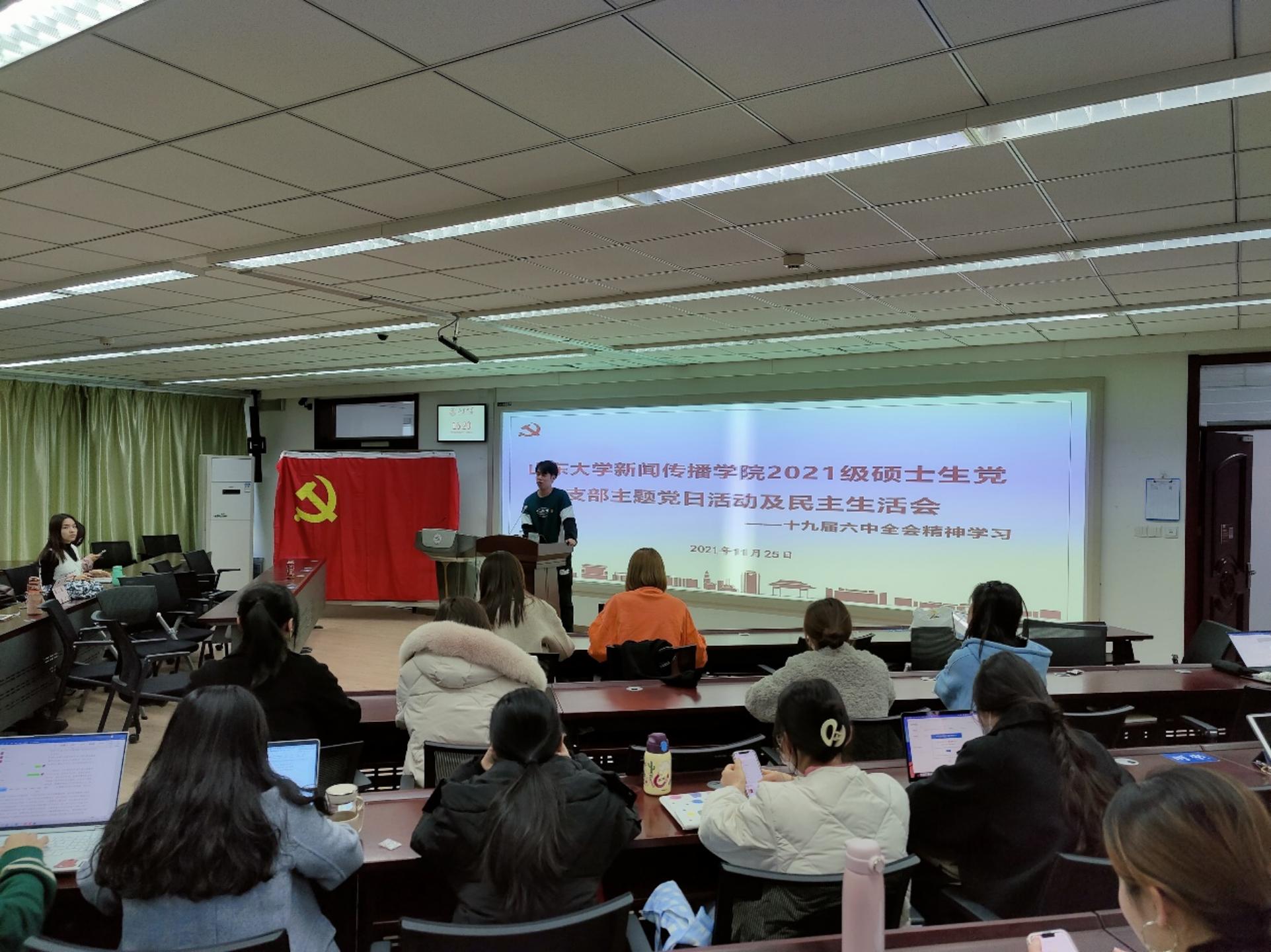 2021年11月25日,威廉williamhill2021级硕士生党支部于逸夫信息楼B201室开展深入学习党的十九届六中全会精神活动暨民主生活会。会议应到党员27人,实到党员27人,符合规定人数召开会议。会议由党支部副书记李子嵩主持。