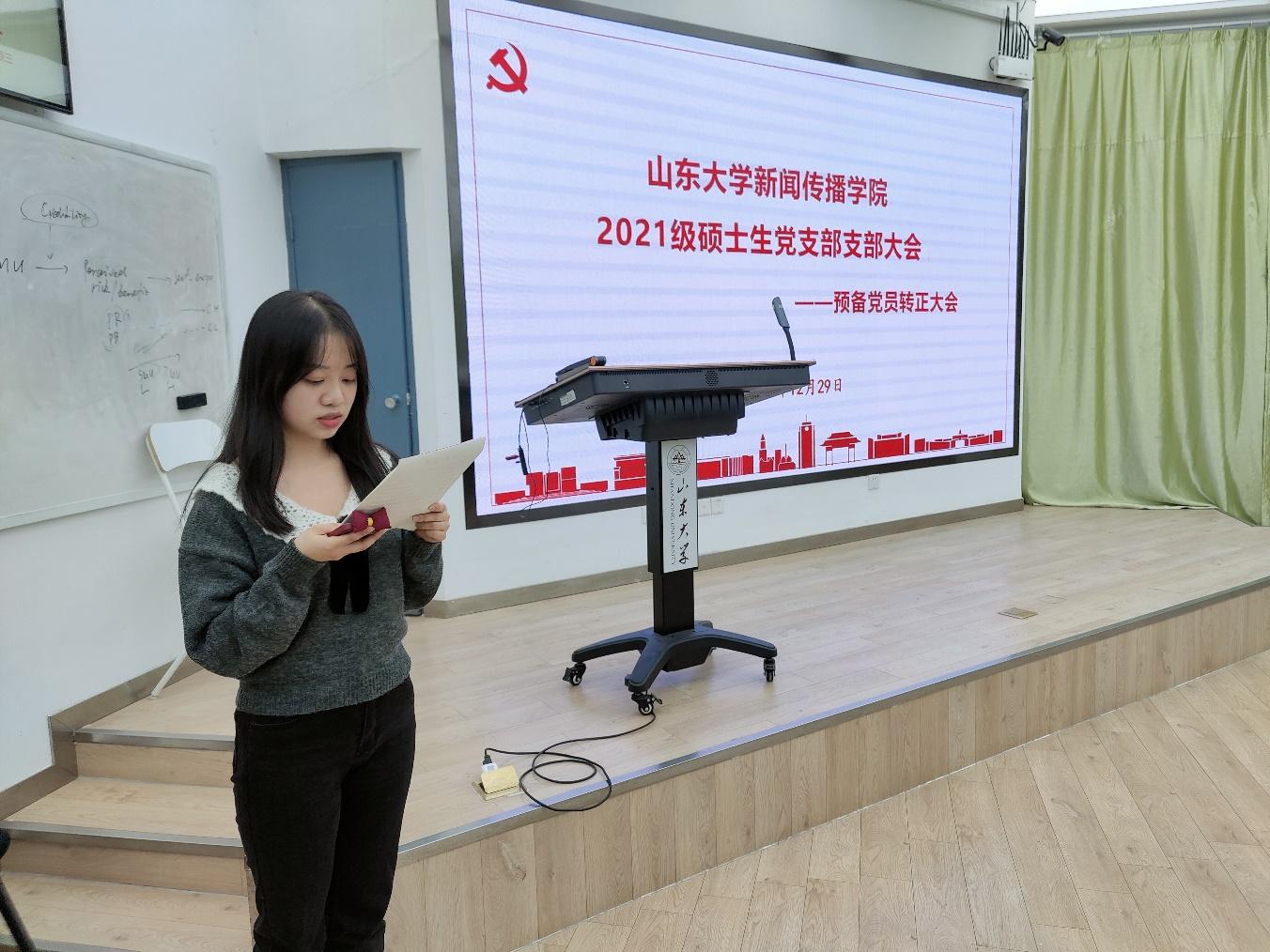 12月29日下午,威廉williamhill2021级硕士生党支部预备党员转正大会在逸夫信息楼B101室召开。本次会议的主题是讨论支部胡宇菲同志按期转正的问题。2021级硕士生党支部应到党员27名,实到党员26名符合规定人数召开会议。会议由党支部副书记李子嵩主持。