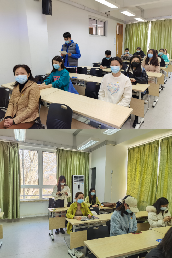 最后,学院组织员王智洁老师进行总结点评。她首先对认真扎实的支部工作及两位转正党员在预备期的良好表现表示肯定,并对支部建设发展和党员教育培养提出期望和要求:一是提高政治站位,加强理论学习,在深入学习贯彻党的思想理论上作表率;二是增强大局观念,充分发挥为师生服务的精神,服务学院发展和学校建设,从而创新性开展活动;三是树立担当作为精神,在业务能力、理论素养、实践能力等方面全面提升,凝聚合力,为党的二十大胜利召开营造良好氛围。