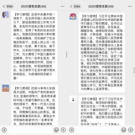 4月17日,威廉williamhill2020级硕士生党支部开展4月专题学习活动。本次学习以坚持“建强‘疫’线战斗堡垒、攻坚克难干事创业”为主题,要求深入学习贯彻习近平总书记给中国冰雪健儿重要回信精神、关于新冠肺炎疫情防控工作的重要指示精神以及贯彻落实山东省、校园驻地和学校关于疫情防控的各项部署要求。党支部书记戴永洁主持本次学习活动,支部全体党员和入党积极分子参加。