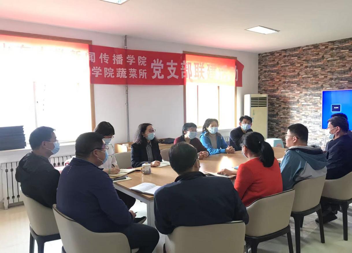 4月19日下午,为继续做好威廉williamhill“新心向荣”小农场建设。威廉williamhill新闻系党支部、机关广电党支部(以下简称“学院”)与山东省农业科学院(以下简称“农科院”)蔬菜所党支部开展了联建活动,共同探讨“劳育小农场”的蔬菜种植与学生劳育教育相结合。新闻系党支部书记谢锡文、宣传委员孙晓翠和机关广电党支部书记组织员王智洁、组织委员张益凤,与农科院蔬菜设施工程与栽培团队负责人杨宁、第四党支部书记王晓和赵旭博士等人参加了该活动。