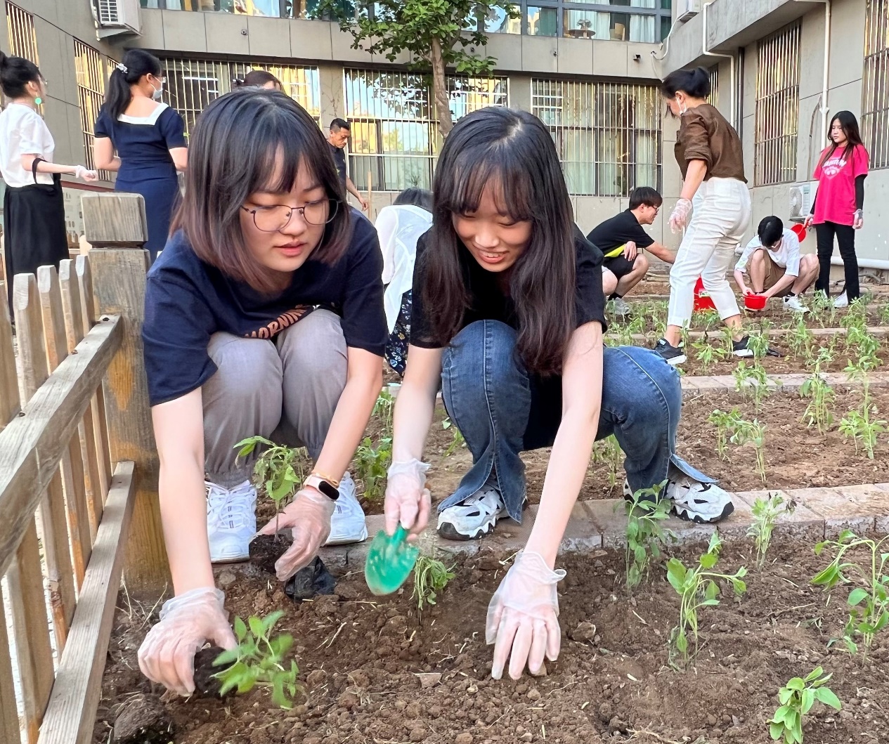 5月24日、27日、30日下午,新闻学党支部、学院机关广电党支部党员及教职工,与学院“一委三会一中心”(团委、学生会、研究生会、权益委员会、创新创业中心)的学生骨干、2022届毕业生代表一起,在生命南楼前的小菜园开展了“绿色种植”系列活动。在前期与后勤保障部党委共建打造“新心向荣”小菜园三全育人实践基地的基础上;以支部党建引领劳动教育,继续拓展“小菜园”与非遗文化相结合,打造药食同源“百草园”;助推劳动育人,凝聚育人合力。学院党委副书记王丽君、组织员王智洁与学院教工党支部、学生党支部的支部书记、委员及部分党员和毕业班同学参加了劳动。