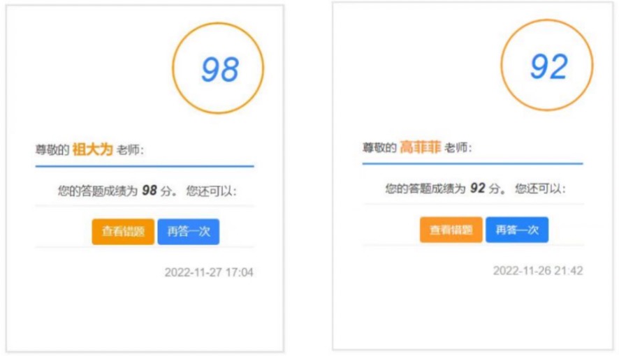 随后,全体党员在学校党的二十大精神知识答题系统中进行了线上答题活动,均取得了较好的成绩,巩固了此次学习的内容,检验了此次学习的效果。通过答题对党的二十大精神的重要意义和丰富内涵有了一定的内涵式认识,加强了政治思想觉悟,提高了自觉学习党的二十大精神的能力,切实把思想和行动统一到党的二十大精神上来,把智慧和力量凝聚到党的二十大确定的各项任务上来。