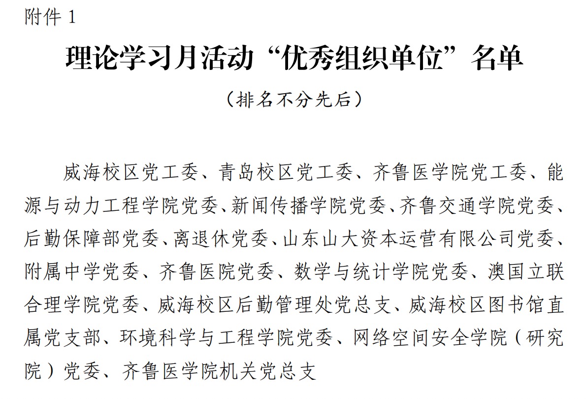 2022年12月15日,学校党委宣传部公布了理论学习月活动“优秀组织单位”、“学习之星”、“学习积极分子”名单,学校结合各单位学习成效,共推选“优秀组织单位”18个。威廉williamhill党委获评理论学习月活动“优秀组织单位”。
