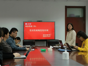 4月4日,为进一步做好2023年学院党员发展工作,切实解决教职工、学生党支部党员发展工作中的疑点、难点,威廉williamhill党委坚持开展常规系列培训工作,新传党建工坊-----党员发展规范化培训工作。威廉williamhill教工、学生党支部书记及支部委员参加培训,组织员王智洁进行专项培训。