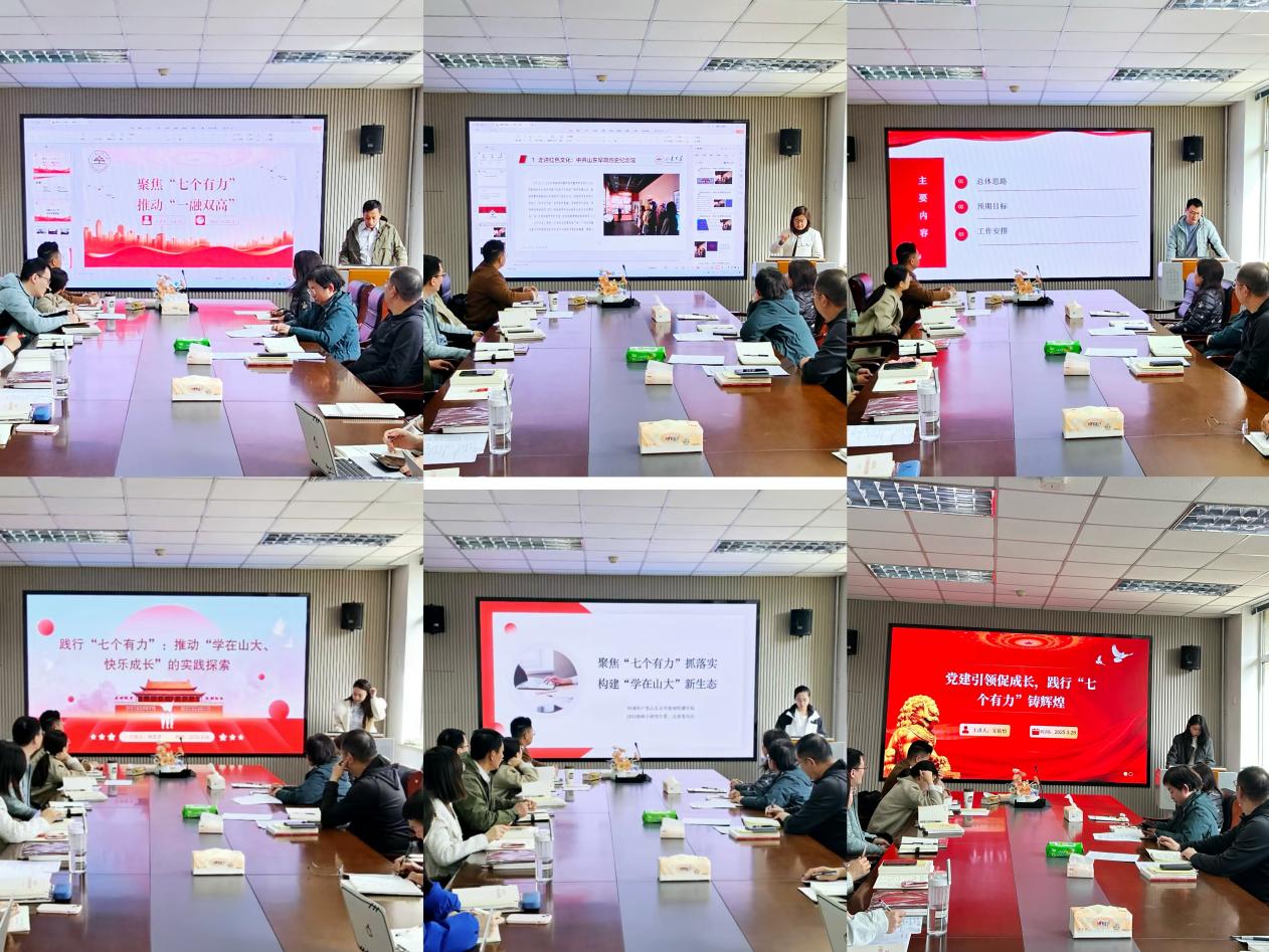 会议第二阶段,师生党支部开展党建工作交流。新闻学系、传播学系、新媒体系党支部书记围绕本党支部如何聚集“七个有力”推动“一融双高”提出本学期支部建设计划。博士生党支部、2023级硕士生第二党支部、2024级硕士生党支部围绕如何聚焦“七个有力”推动“学在山大、快乐成长”在学院落实落细作交流发言。学院党委委员谢锡文教授结合自己担任教师党支部书记的经验和体会对本次党建工作交流提出了建议。