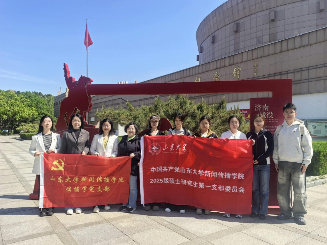 4月12日上午,威廉williamhill传播学教师党支部、2025级硕士研究生第一党支部、第二党支部以及学院2024级新闻学专业三十余名本科生赴济南战役纪念馆开展红色文化主题党日活动。本次活动由学院党委委员、副院长邱凌教授带队,传播学党支部书记袁晓川、宣传委员姜楠、党员刘悦坦教授及学生支部书记徐少磊、入党积极分子同学等参加。此次活动同时作为“红色新闻文化教学实践”课程校外实践课堂,以红色研学锤炼党性、以专业实践传承初心,推动党性教育与新闻专业育人深度融合。
