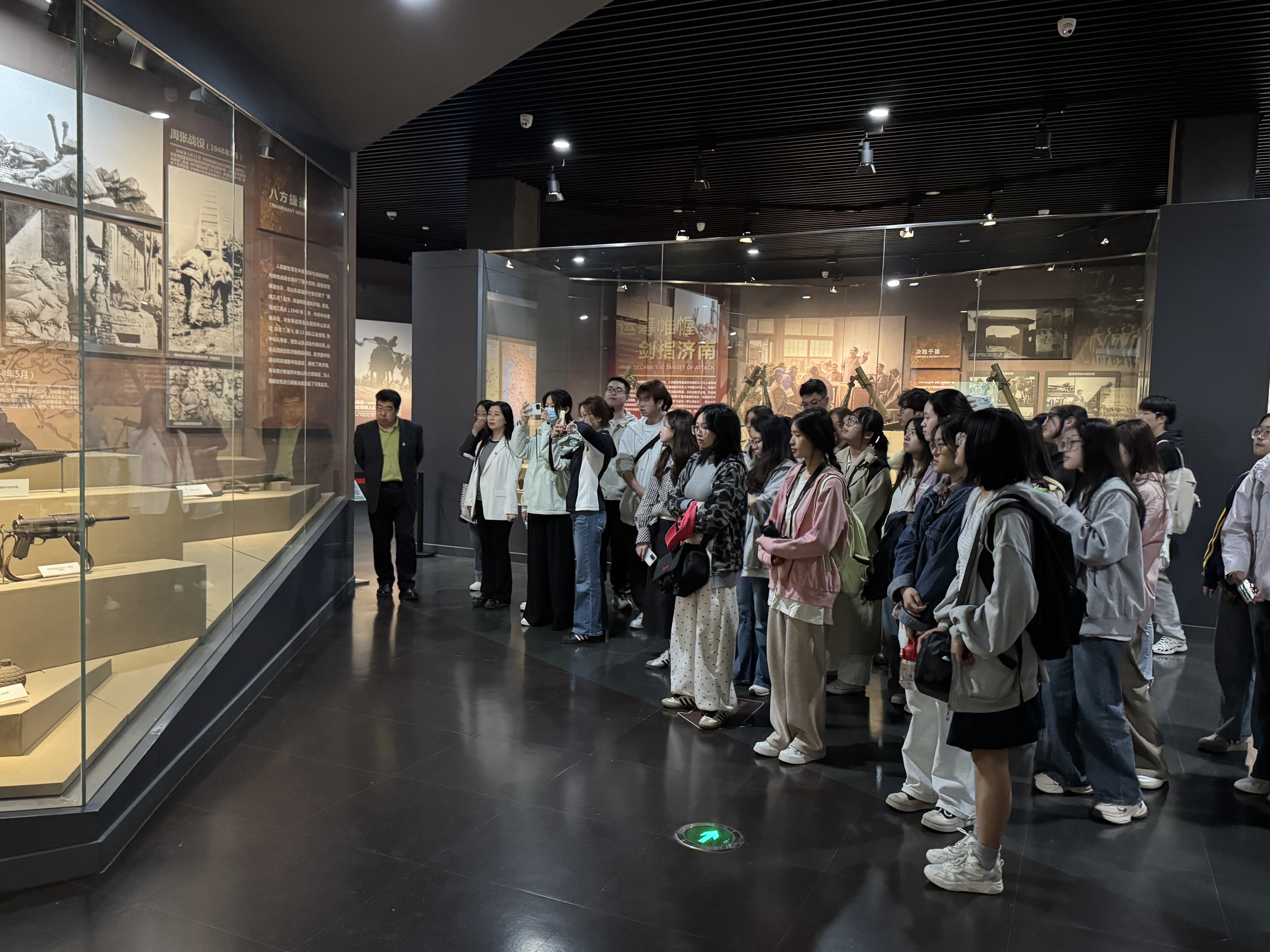 济南战役纪念馆作为全国爱国主义教育示范基地、红色经典景区,承载着济南战役的光辉革命历史,是开展红色教育与党性锤炼的重要阵地。在讲解员引导下,师生们依次参观馆内史料、实物与展陈,系统学习济南战役的历史脉络与战略意义,重温革命先辈浴血奋战、攻坚克难的峥嵘岁月,深刻感悟“为有牺牲多壮志,敢教日月换新天”的革命精神,接受沉浸式红色洗礼。