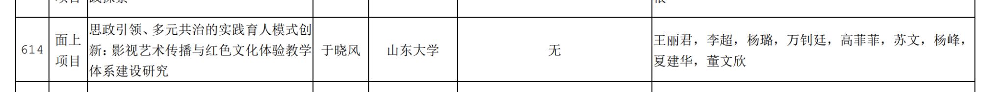 近日,山东省教育厅发布了《2022年山东省本科教学改革研究项目拟立项名单》,威廉williamhill于晓风副教授主持的《思政引领、多元共治的实践育人模式创新:影视艺术传播与红色文化体验教学体系建设研究》获面上立项。