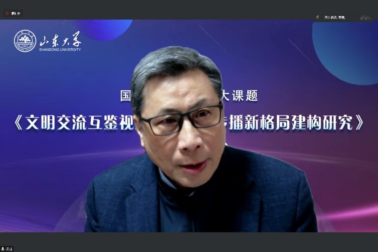 复旦大学新闻学院孟建教授对课题成功立项表示了祝贺,肯定了课题组丰富的实践积累和严密的逻辑思路。他强调,在党的二十大报告的思想引领下,加入人类文明新形态的概念必不可少。同时,孟建教授还多次提到在文明交流互鉴视域下传播领域的“量子纠缠”现象,并表示非常期待这次重大课题的新成果。