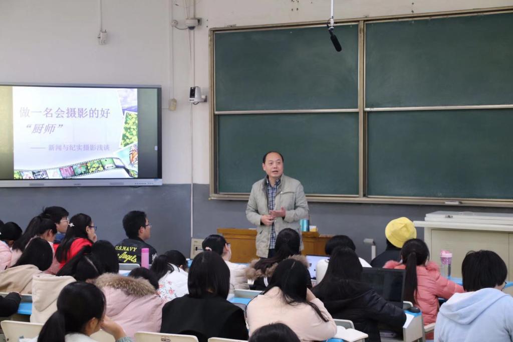 资深摄影师刘军主编开讲新生研讨课 近日我院邀请了资深摄影师刘军做客“新生研讨课”,为大一新生上了一堂生动的新闻摄影启蒙课。刘军现任齐鲁晚报·生活日报图片新闻中心主编、齐鲁融媒视频中心总监、中国晚报摄影学会执行会长、全国晚报无人机摄影联盟执行长、山东新闻摄影学会智控摄影委员会主任;是2008年北京奥运会山东省唯一有正式采访资格的奥运注册摄影记者;曾荣获山东省十佳新闻摄影记者、全国晚报优秀图片编辑等荣誉。这堂课中刘军主编以《做一名会摄影...