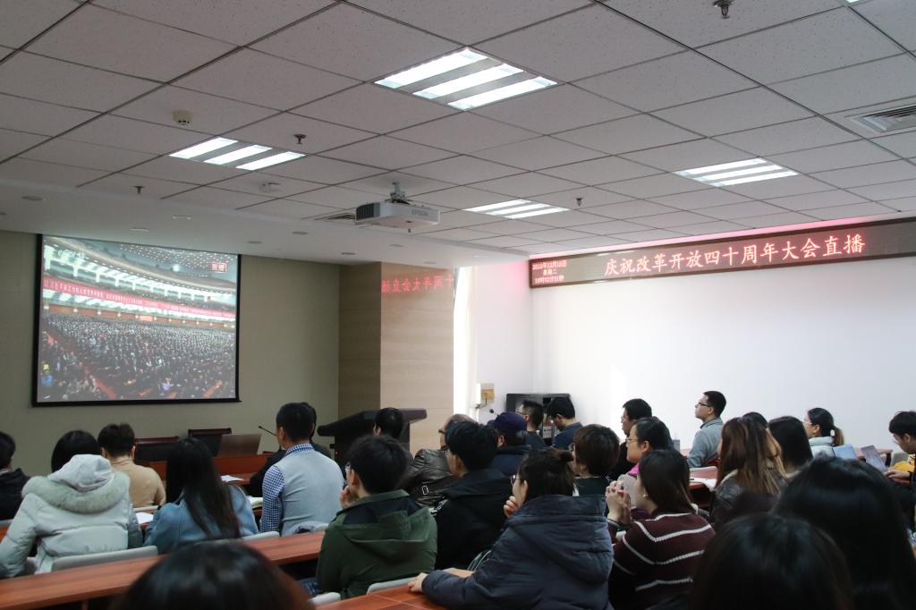 威廉williamhill组织师生观看“庆祝改革开放四十周年大会”直播 12月28日上午10时,“庆祝改革开放四十周年大会”在北京人民大会堂隆重召开,威廉williamhill部分教职工、学生党员以及入党积极分子在知新楼A座606报告厅,观看大会的现场直播。院党委书记王德胜,党委副书记王欣一同观看。十点整,大会正式开幕,首先是100名改革开放杰出贡献个人介绍和颁奖仪式,望着大屏幕中一个个表彰人物的面孔,在场师生不时鼓掌致敬。在场全体师生认真聆听了习近平总书记的讲话,大家备受鼓舞,引发...